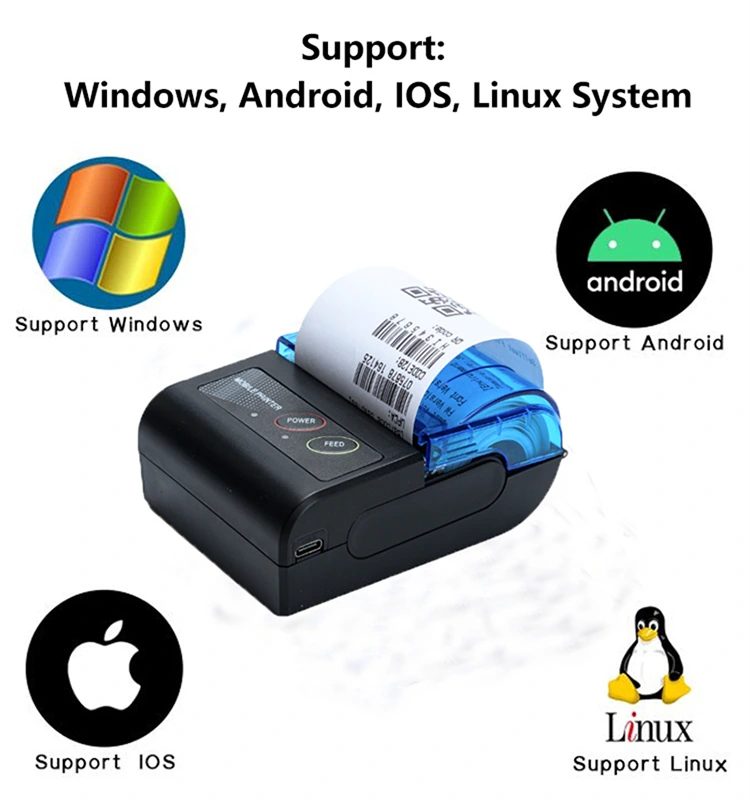 58 mm mobilusis terminis kvitų spausdintuvas yra suderinamas su įvairiomis operacinėmis sistemomis, įskaitant iOS, Android ir Windows, todėl jis yra universalus pasirinkimas bet kuriam vartotojui. Palaiko greitą USB įkrovimą, aprūpintą patvaria įkraunama baterija, puikia ir puikia terminio spausdinimo galvute, užtikrinančia aiškų ir greitą spausdinimo turinį. Esame „Bluetooth“ kvitų spausdintuvo gamintojai, turintys 10 metų patirtį.