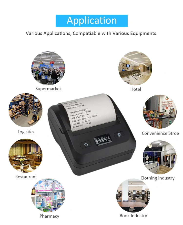 Kaip nešiojamas mobilusis įrenginys, mūsų dizainas yra nedidelio dydžio ir visiškai funkcionalus. Vidinis dizainas buvo griežtai suprojektuotas ir nuodugniai optimizuotas, jame yra didelės talpos baterija ir plataus formato spausdinimo modulis. 80 mm Bluetooth spausdintuvas gali automatiškai pjaustyti popierių. Jis gali lengvai pjaustyti šiluminį popierių, kurio kraštas yra lygus ir be plaukų, turi ilgą tarnavimo laiką ir gali būti naudojamas dažnai.